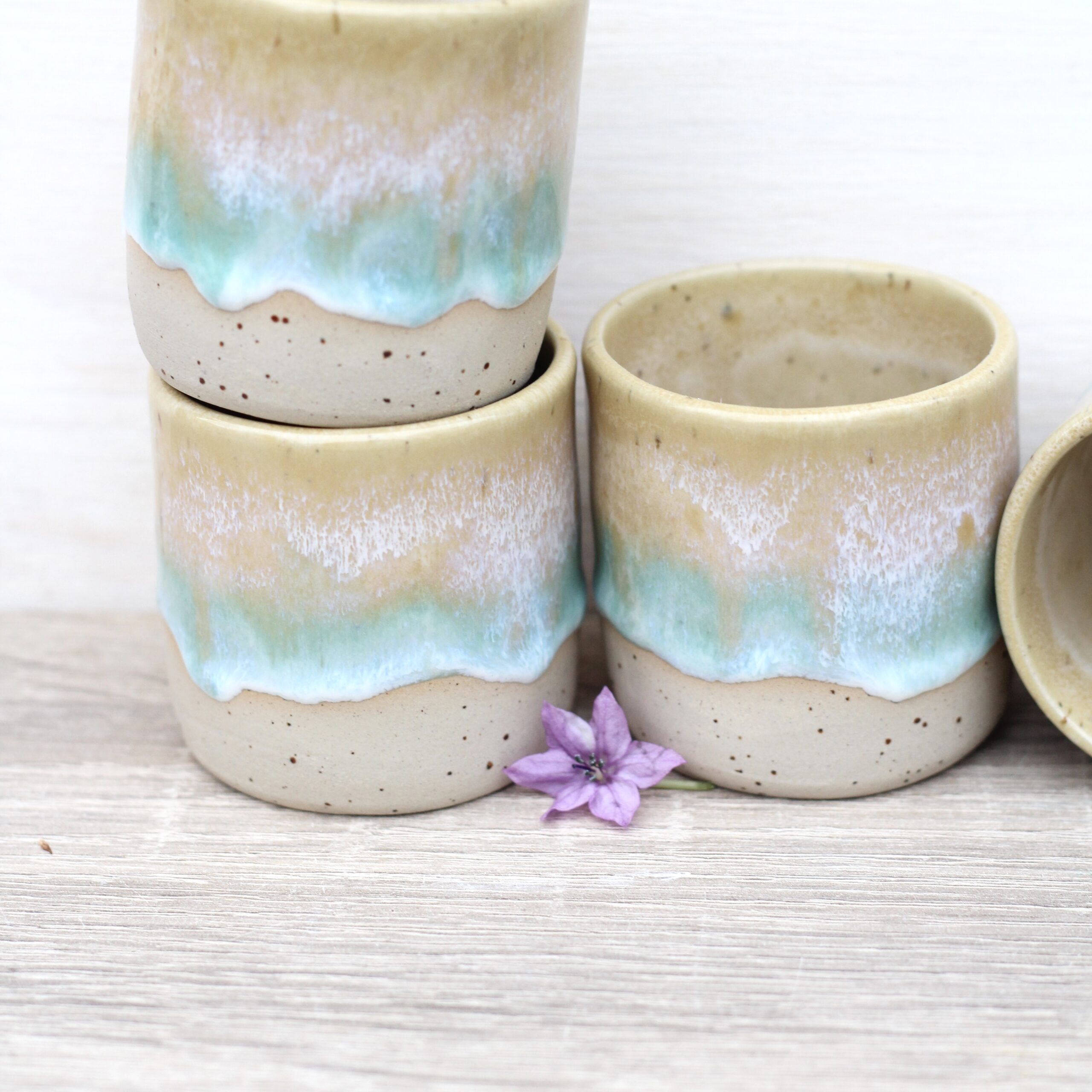 Alle meine Becher werden in der Aufbautechnik, ohne elektrische Drehscheibe gefertigt und sind deshalb besonders einzigartig in ihrer Form, Farbe und Größe. Unregelmäßigkeiten sind gewollt und gehören zu meiner Ästhetik. Fotos und Größenangaben dienen lediglich als Anhaltspunkt.
