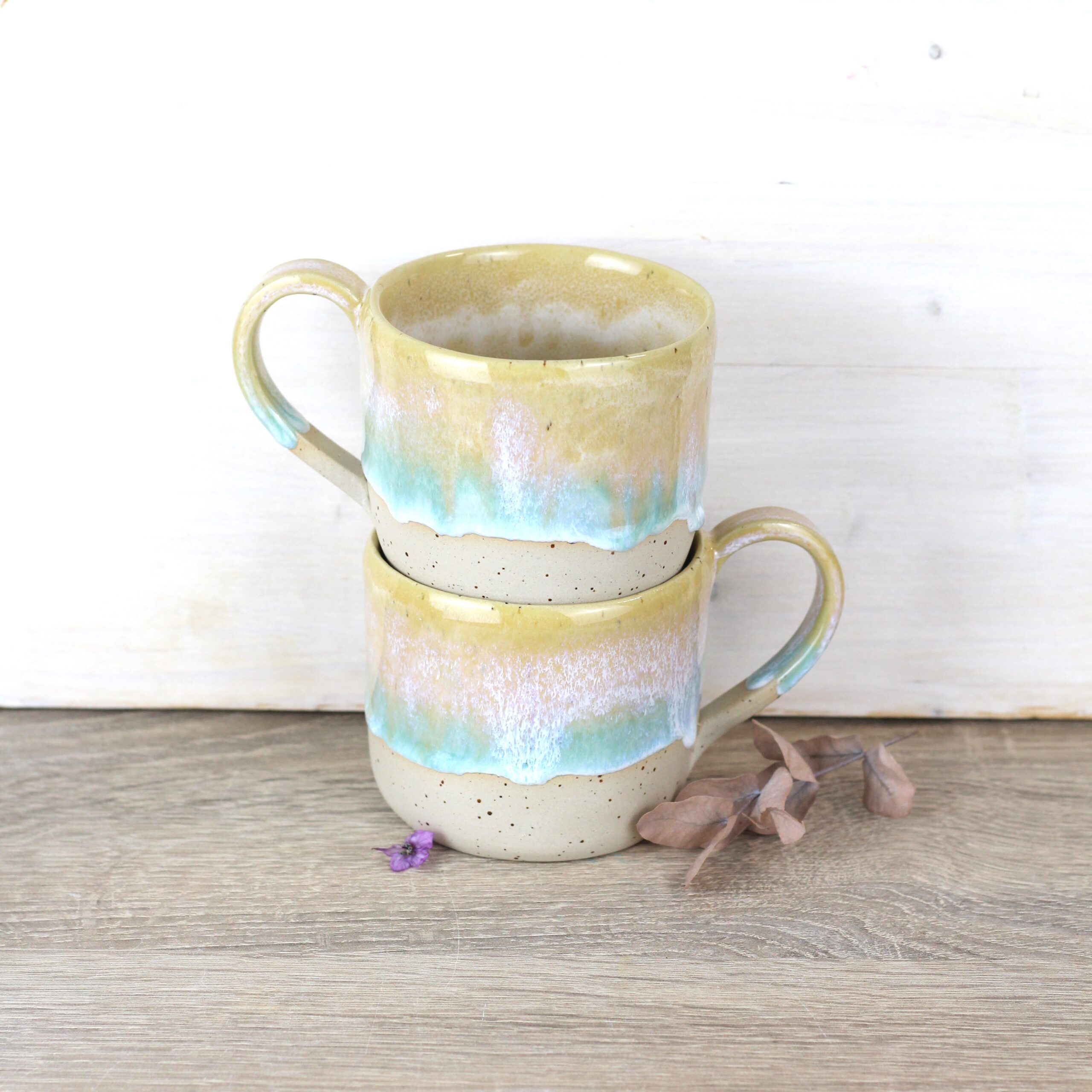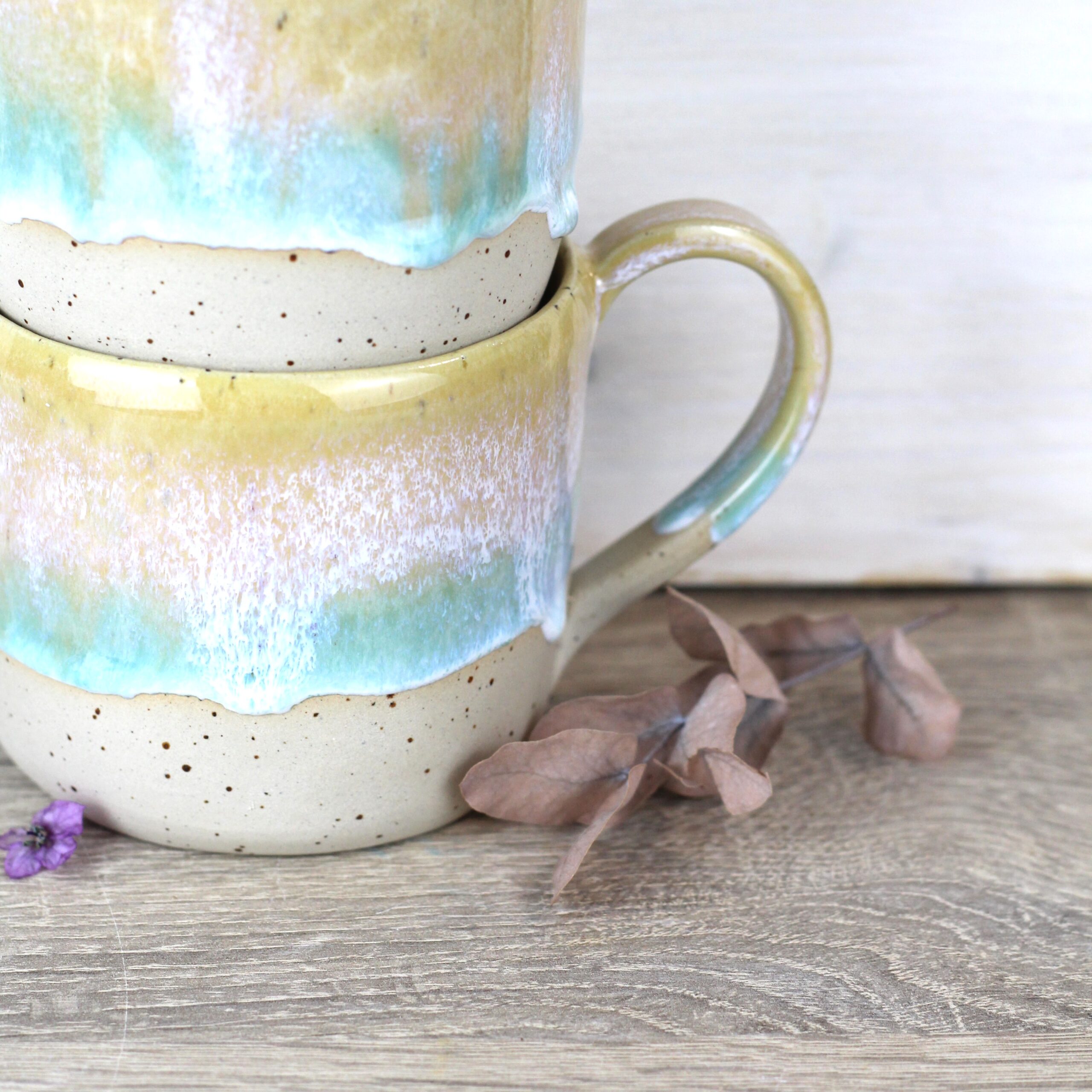 Alle meine Tassen werden in der Aufbautechnik, ohne elektrische Drehscheibe gefertigt und sind deshalb besonders einzigartig in ihrer Form, Farbe und Größe. Unregelmäßigkeiten sind gewollt und gehören zu meiner Ästhetik. Fotos und Größenangaben dienen lediglich als Anhaltspunkt.
